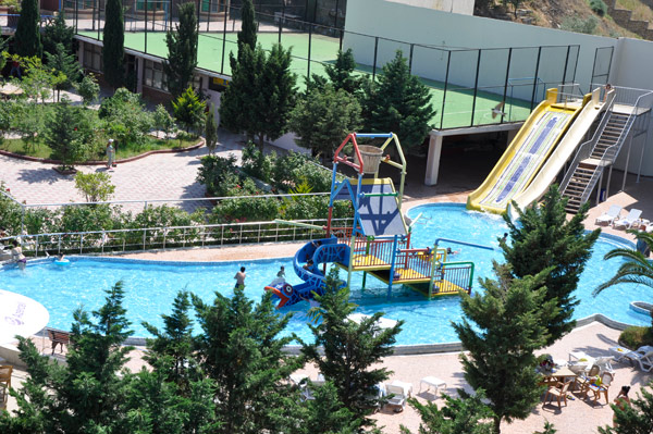 AF Hotel AF Hotel находится вдали от городской суеты, славится чистым воздухом и великолепным видом на море. В отеле существуют одноместные и двуместные стандартные, двуместные Delux номера, четырехместные 3-х комнатные апартаменты, дуплексные коттеджи на 4+1 человек, AquaPark с бассейнами для детей и взрослых, детский развлекательный центр, игровые и спортивные залы, футбольные, волейбольные и баскетбольные площадки, теннисный корт и центр настольных игр.
