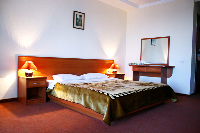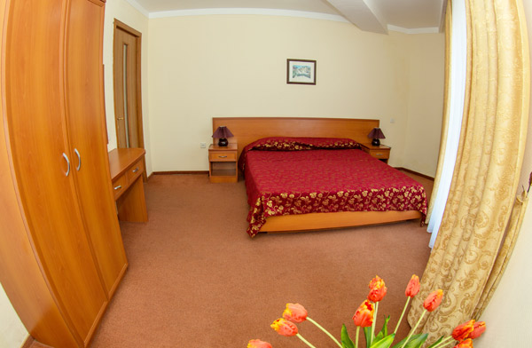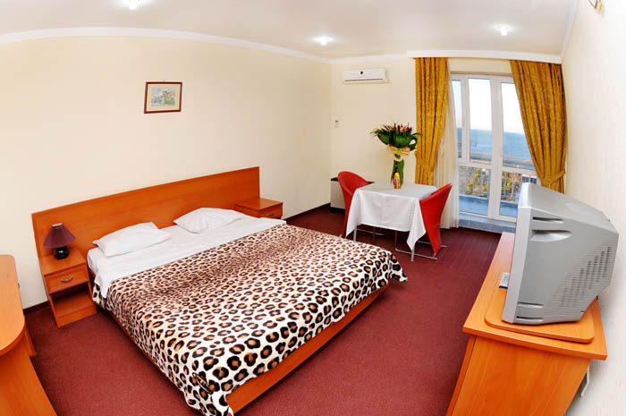 Standard Single room with double bed has: satellite TV, WI-FI internet access, central air conditioning, direct dial telephone with the city rough «9», carpet, shower, hair dryer, mirror makeup, toiletries, towels, bathrobes, slippers, shoe horn, wardrobe, dining table with 2comfortable chairs, mini-refrigerator, bottled water. Balcony overlooking the sea/water park. It is also possible to install an extra bed.